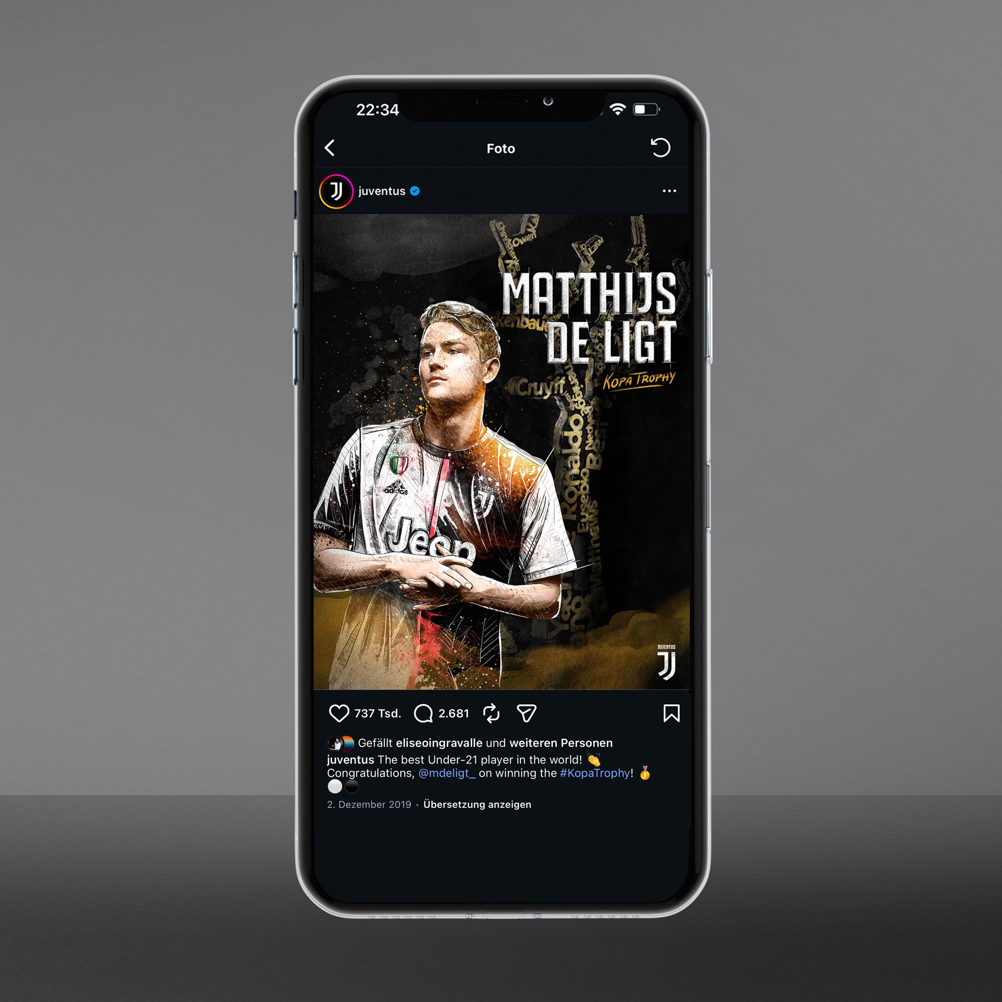 Part of a social media campaign celebrating Matthijs de Ligt’s Kopa Trophy win.