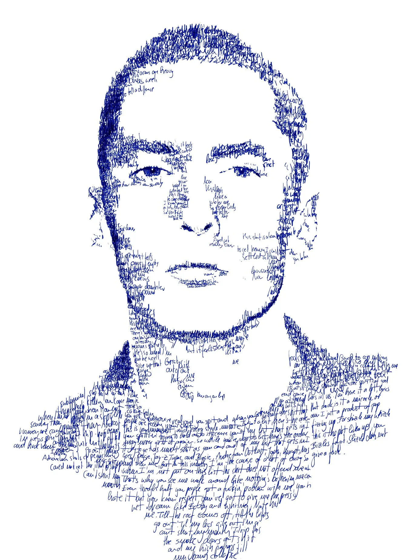 Eminem Handwritten Portrait entertainment Feb 5 Written By Sergio Ingravalle Personal illustration experiment using handwritten song lyrics to construct a portrait. Sergio Ingravalle