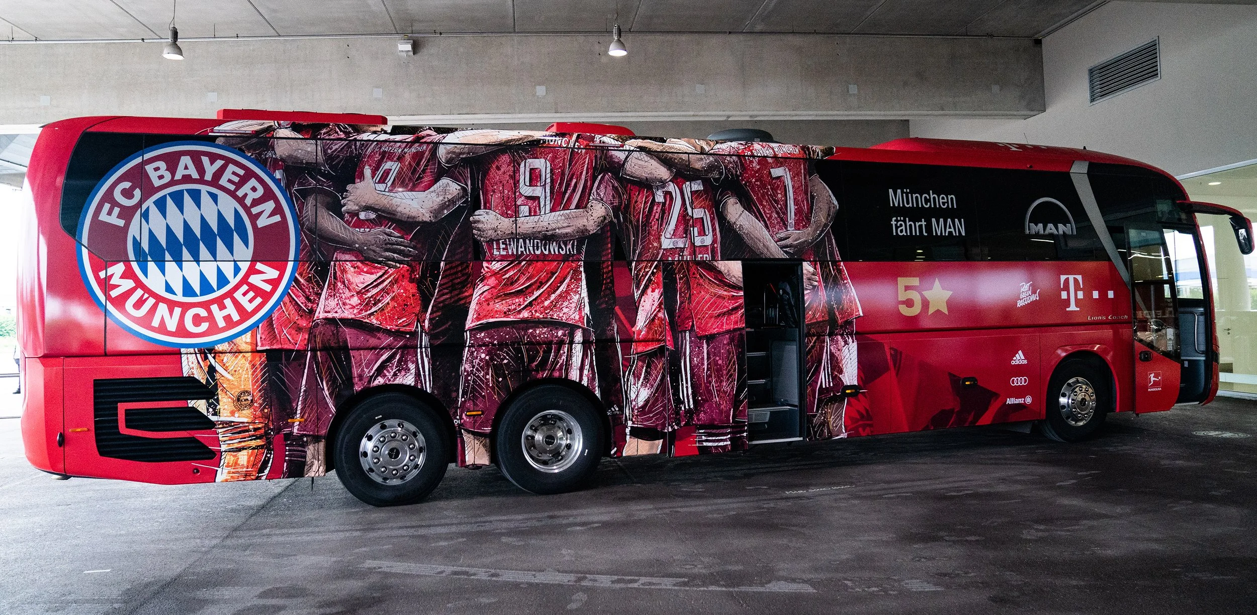 Illustration created for FC Bayern Munich, applied to the club’s official team bus (2021/22 season).