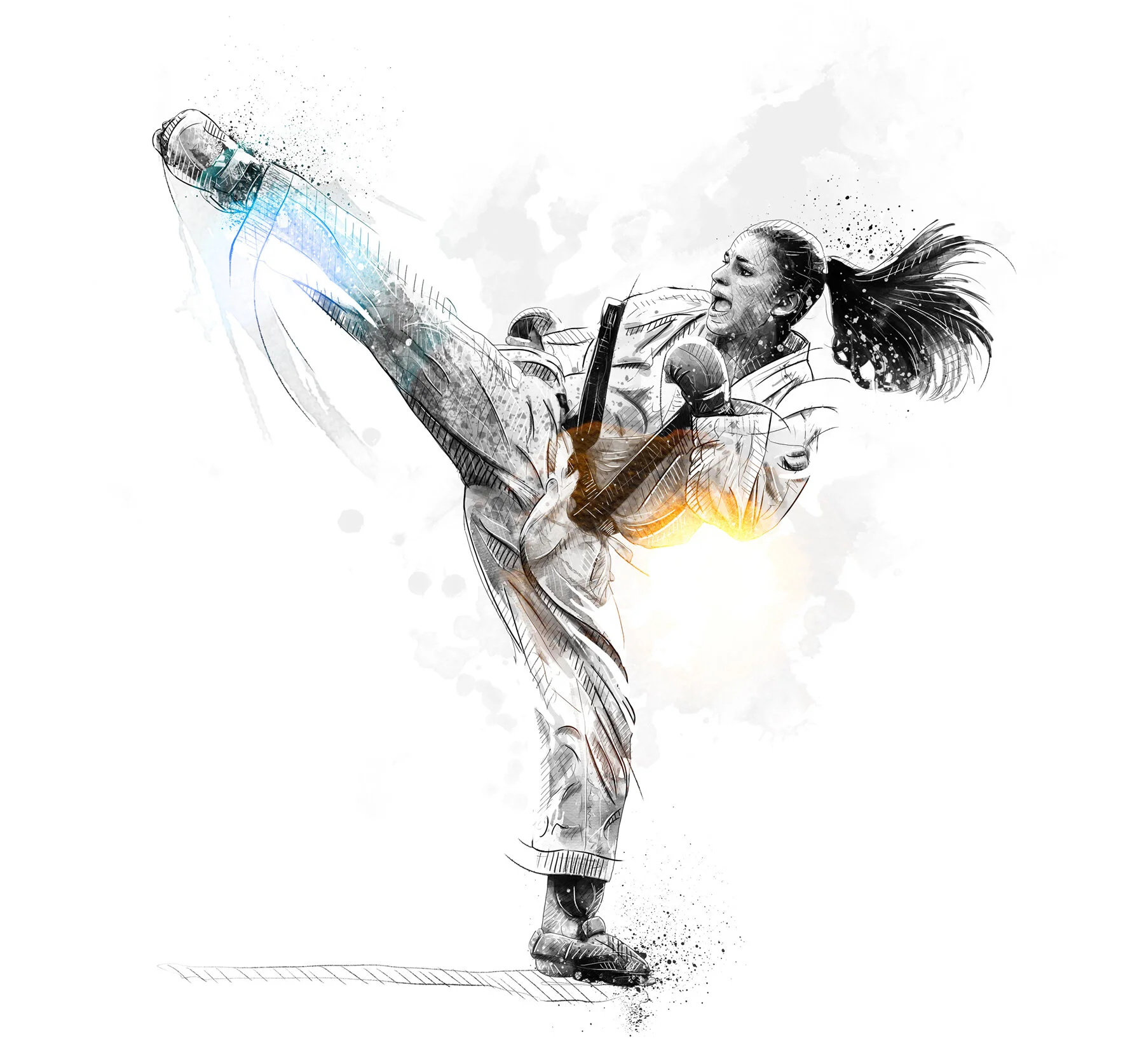 Each piece was illustrated using a mixed media approach—ink and watercolor textures combined with digital finishing. The artworks were kept largely monochrome, with subtle blue and yellow highlights added to lend each scene a sense of clarity and focus. The goal was to capture the energy, posture, and rhythm of each discipline through expressive, flowing linework.