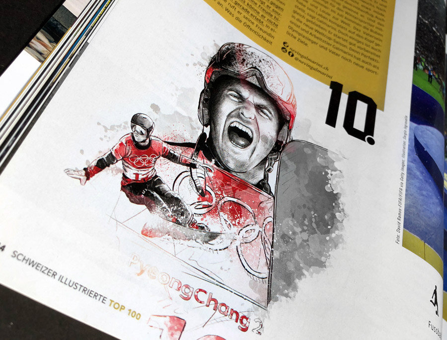 Various portraits and figurative illustrations for the special issue »TOP 100 Swiss Athletes 2018« by »Schweizer Illustrierte«.